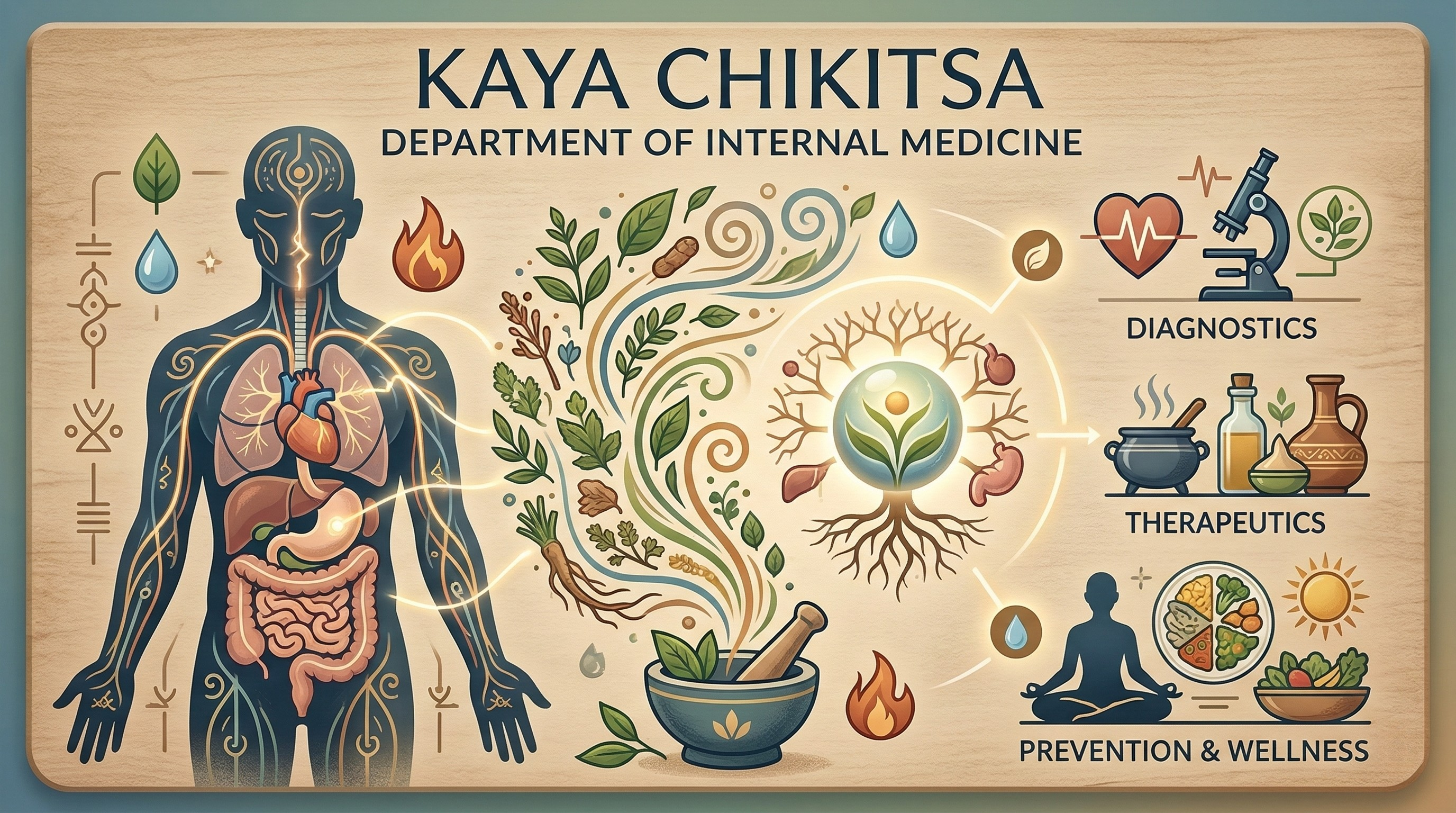 Internal medicine focusing on holistic treatment of diseases through Ayurvedic principles and therapies.