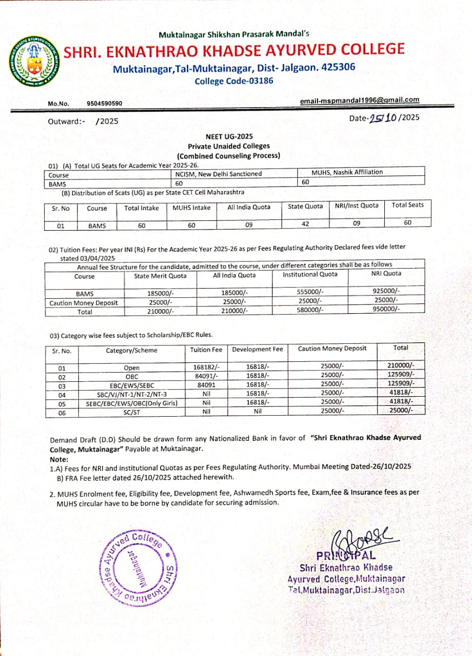 Our admission process is transparent, merit-based, and conducted in accordance with NCISM guidelines and state government regulations. We seek passionate students who are committed to serving humanity through Ayurvedic healthcare.